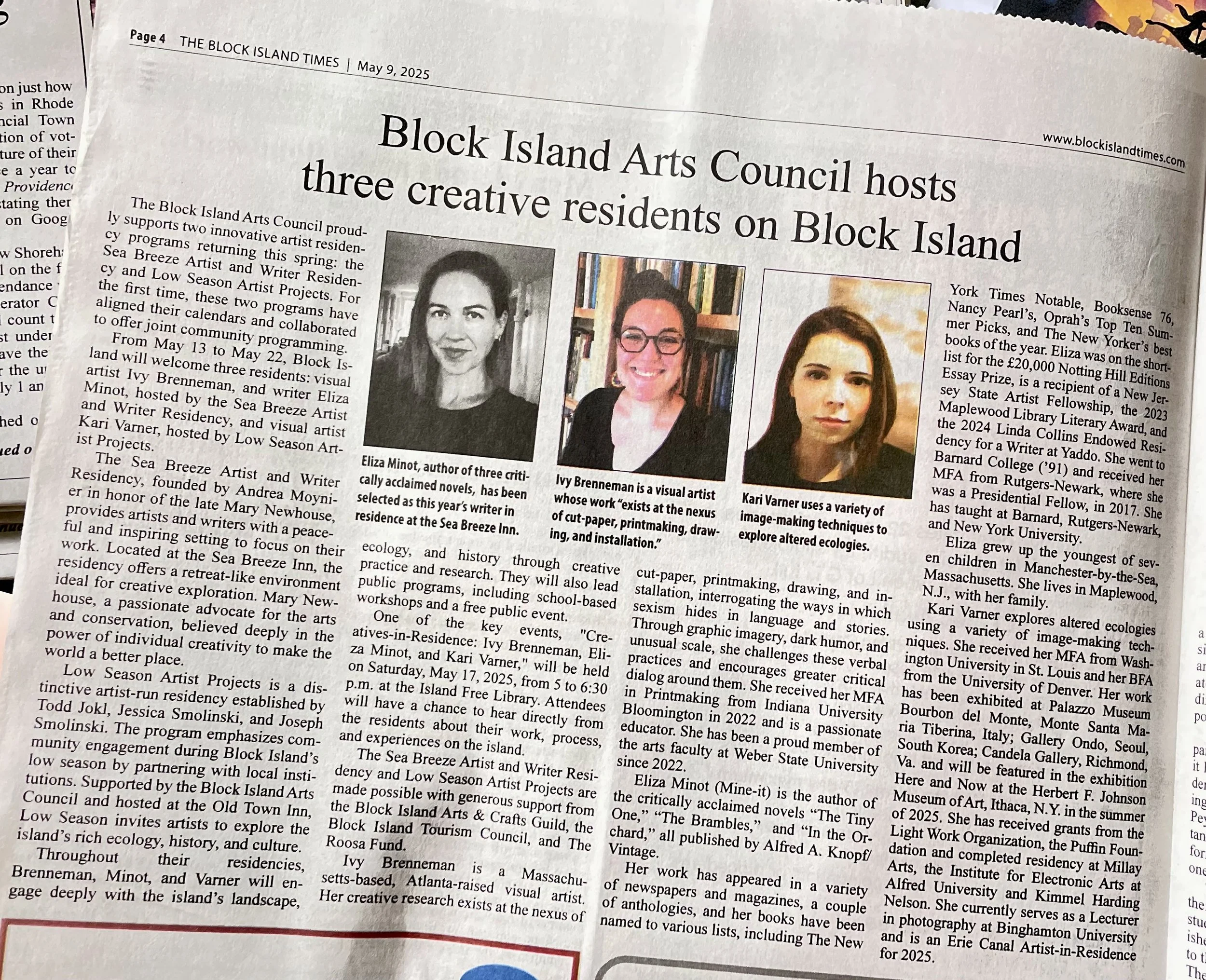 BIAC supports two artist residency programs on Block Island